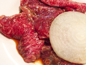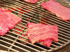 フツー、焼肉ってのは一枚一枚網に乗っけてそれぞれが育てて食うってのが相場だけど、オッサンは皿の肉を